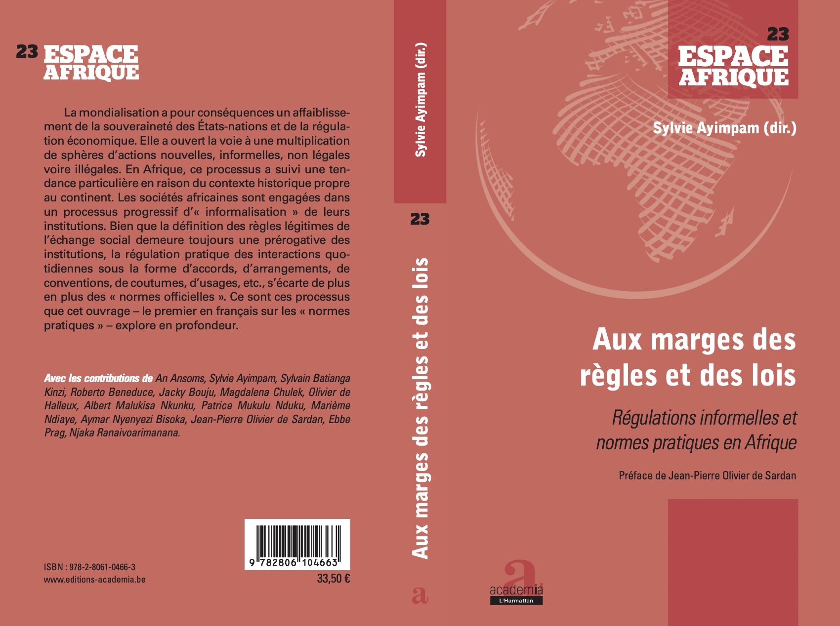 Sylvie AYIMPAM (ed), 2019, Aux marges des règles et des lois. régulations informelles et normes pratiques en Afrique, Coll. Espace Afrique, 23, Louvain-la-Neuve, Academia-L’Harmattan. 335 pages